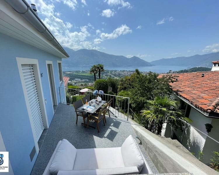 This newly built holiday home is located on the hills above the city center of Locarno and offers a spectacular 180-degree panoramic view over Lake Maggiore and its surroundings. From sunrise to sunset, you can enjoy the changing colors of the sky and the magical sparkle of the lights reflected on the lake in the evening.