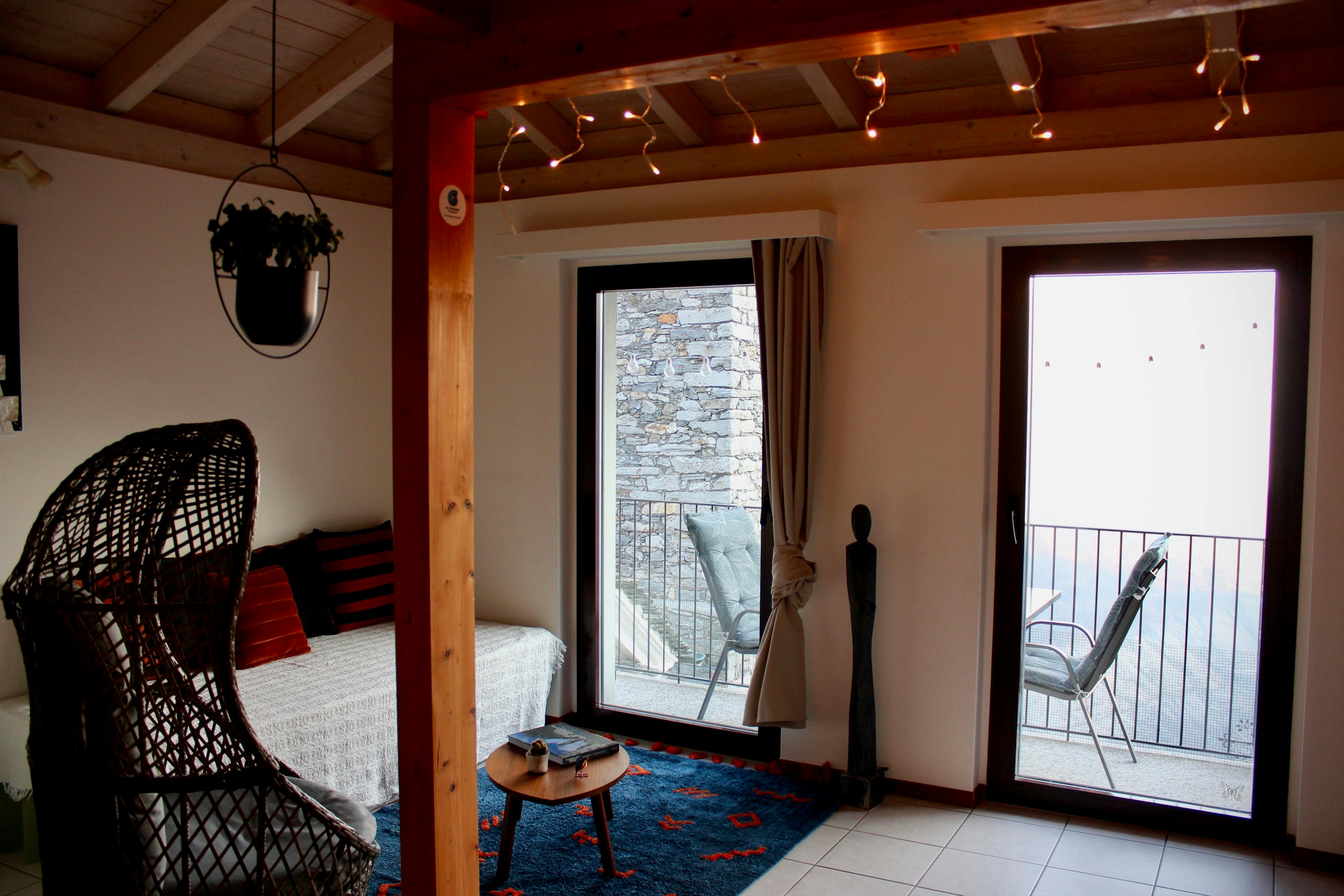 Located on the 3rd floor, the loft-studio enjoys a unique and charming position. It is an excellent base for exploring the region on foot, with many hiking trails starting directly from the village, as well as for excursions to nearby attractions such as Cardada-Cimetta, the Sanctuary of Madonna del Sasso, Locarno, Ascona, and the Brissago Islands. Please note that access to the apartment is via stairs; there is no elevator. The studio is located right next to the Cà Armonia 2 apartment.