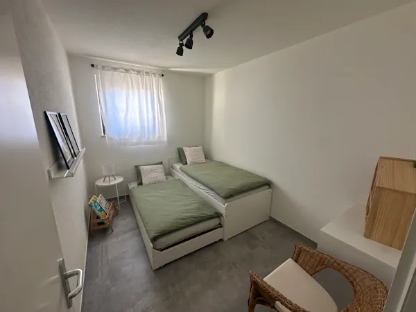 Das zweite Schlafzimmer wurde besonders familienfreundlich eingerichtet, eignet sich aber auch für Erwachsene. Jüngere Gäste sind herzlich willkommen; ein Reisebett und ein Hochstuhl stehen auf Anfrage zur Verfügung.