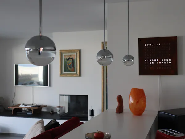 Die exklusiven Räume von „La Brezza“ sind darauf ausgelegt, Komfort, ein helles Ambiente und Entspannung zu bieten und verbinden sich perfekt mit der Eleganz und der Liebe zum Detail, die diese Wohnung auszeichnen. Nur 2 Gehminuten vom See entfernt verfügt sie zudem über eine private Garage mit sicherem Fahrradabstellplatz und einer Fahrradladestation; die ideale Wahl für einen unvergesslichen Aufenthalt am Lago Maggiore. Im Inneren finden Sie auch Objekte, die an das Leben früherer Zeiten erinnern: eine alte Schreinerwerkbank, eine Holzleiter sowie Skulpturen und kleine Gegenstände, die vom Grossvater des Eigentümers geschaffen wurden und alle aus der Region stammen. Diese Details verleihen der Wohnung einen nostalgischen und künstlerischen Charakter und machen die Räume noch einzigartiger und reich an Geschichte.
