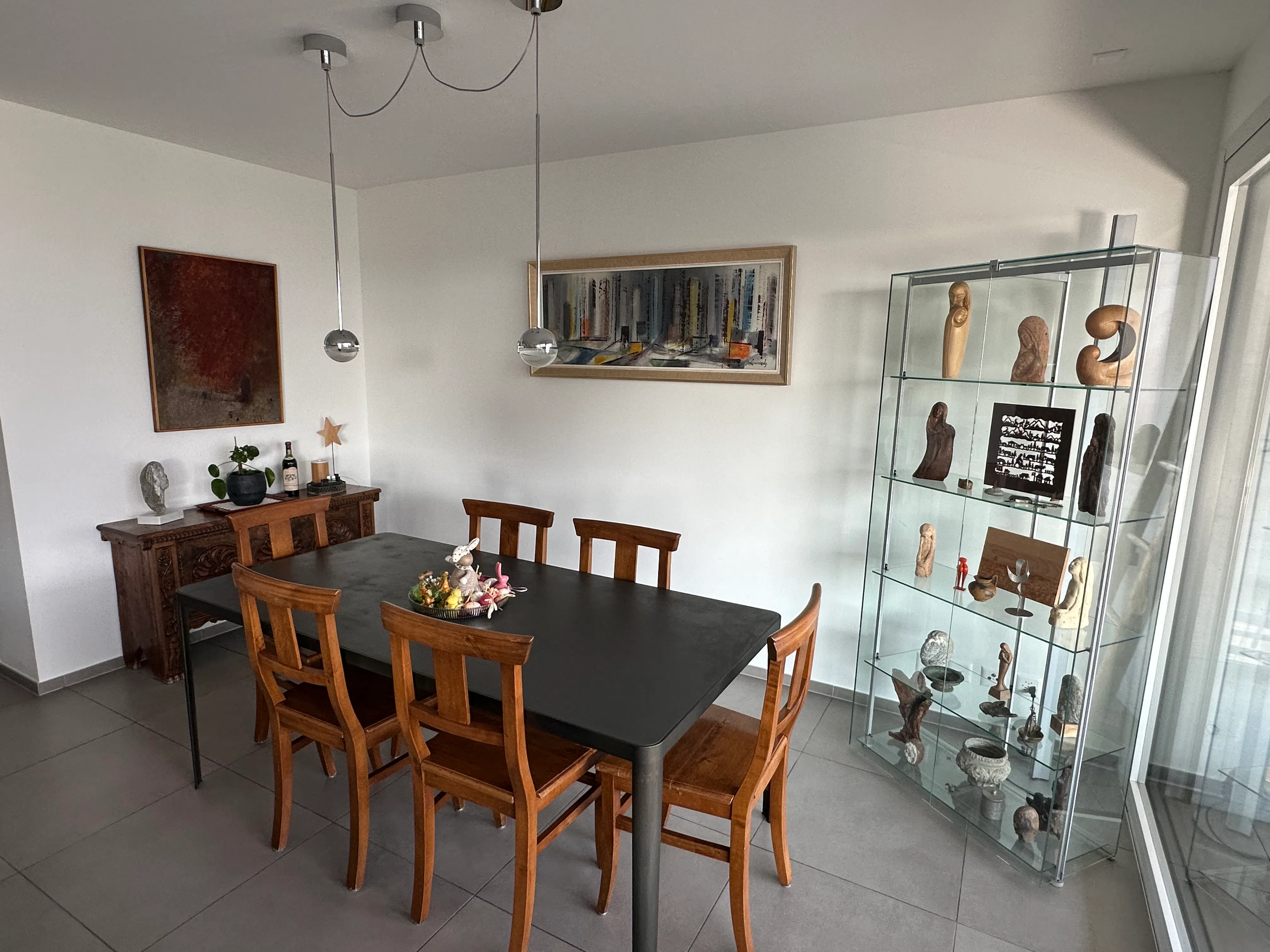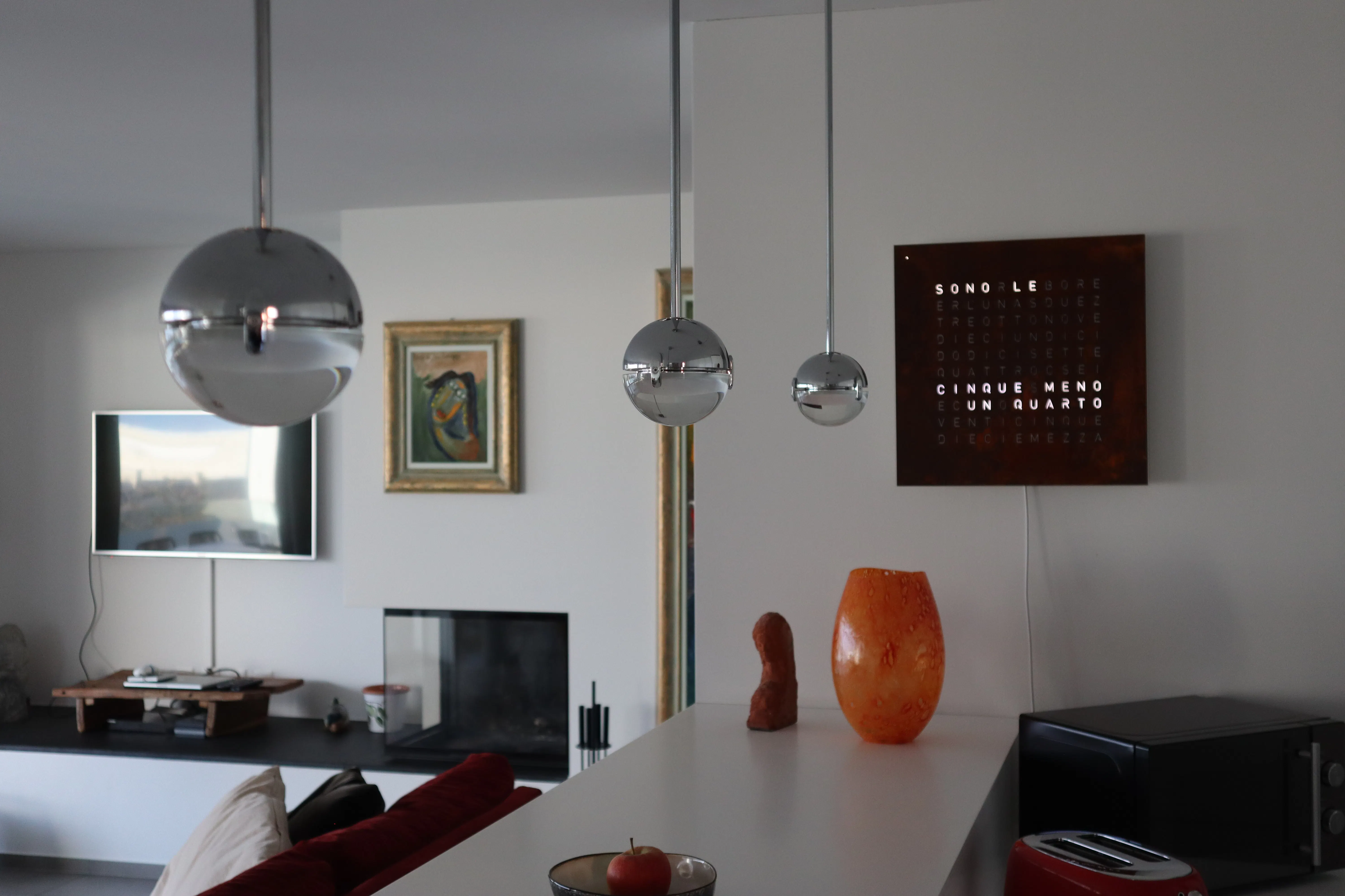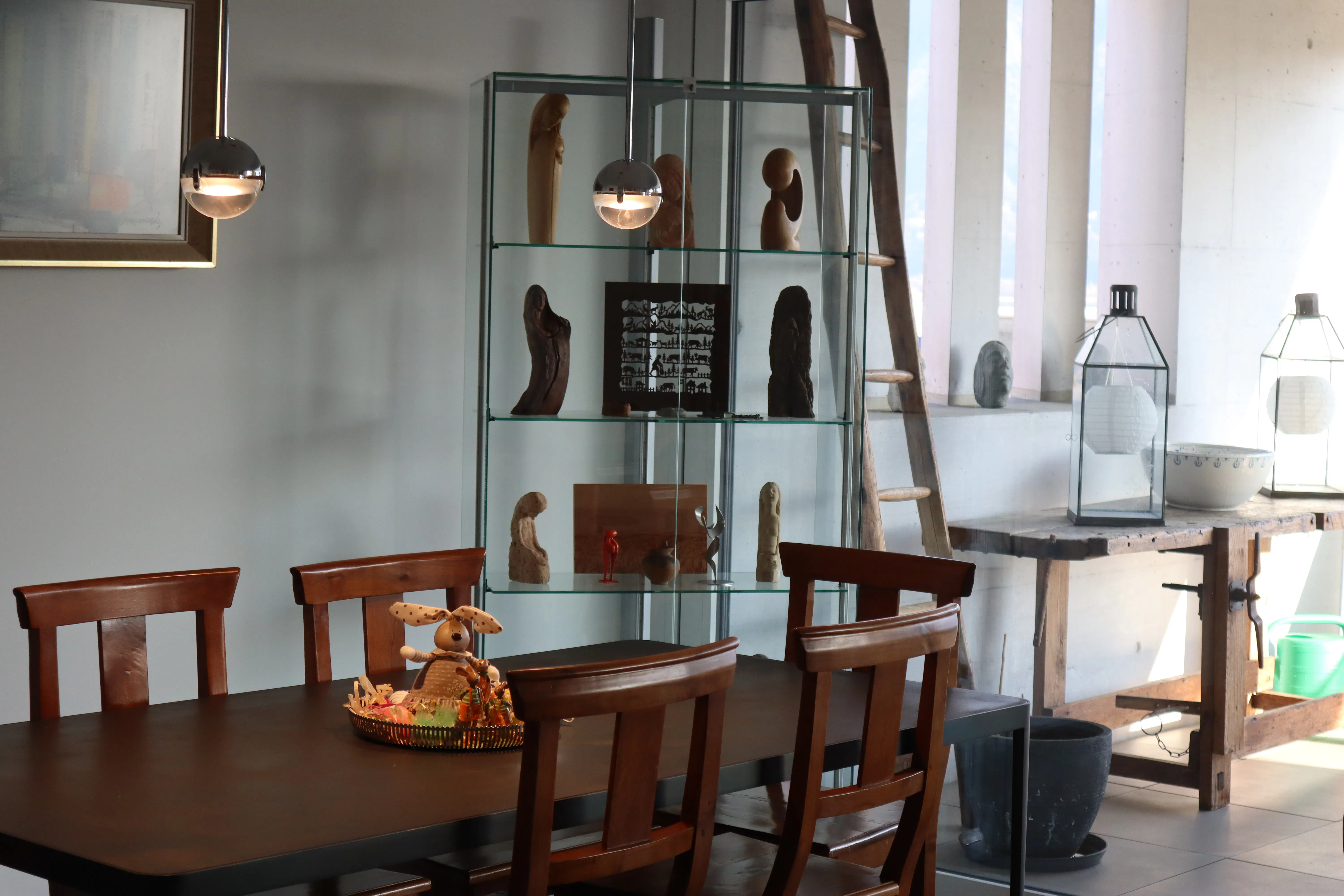 Inside, you will also find objects that recall life from the past: an old carpenter’s workbench, a wooden ladder, and sculptures and small items created by the owner’s grandfather, all originating from the region. These details give the apartment a nostalgic and artistic touch, making the spaces even more unique and rich in history.